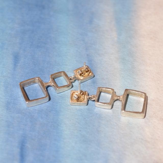 大ぶりで大胆なデザインで耳元のオシャレを楽しんで頂けるピアスになります。イタリア語でQUADRATINI / クワドラティーニ(小さな正方形という意味)という3つの四角いモチーフがなんとも可愛くもかっこよさも感じられるデザインです。