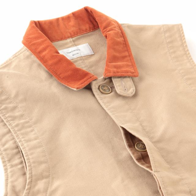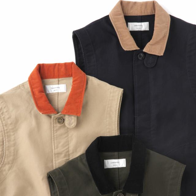 薄手の配色コーデュロイ生地を衿に使用、製品後にワンウォッシュ+タンブラーを施していますので、独特な着古した感が出ています。