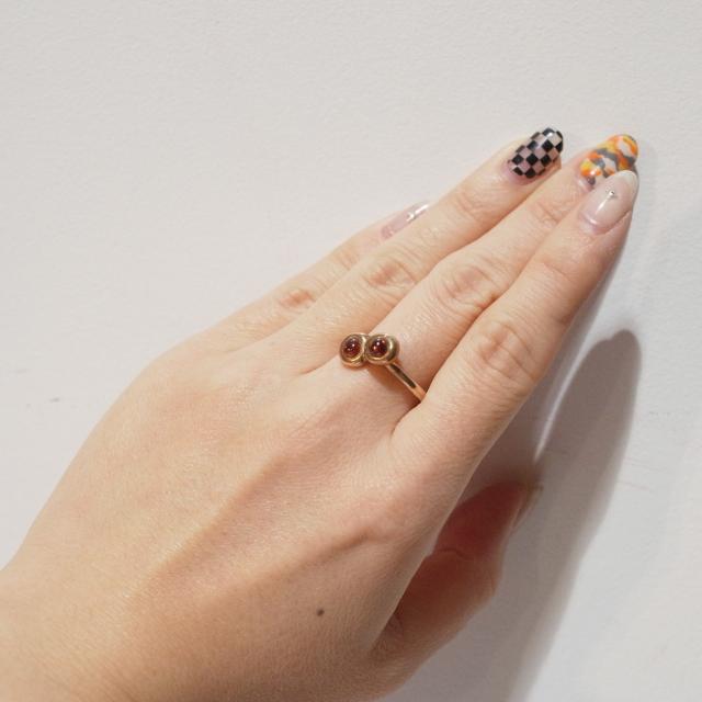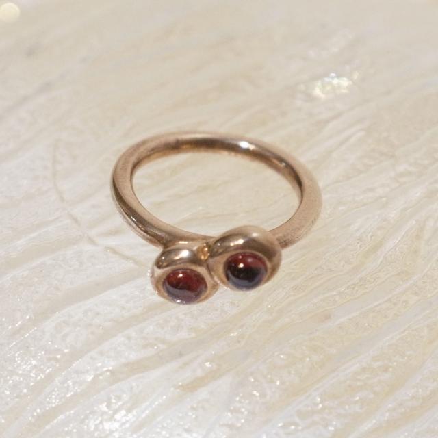 天然のガーネットストーンを2個使用したブロンズ製のリングです。