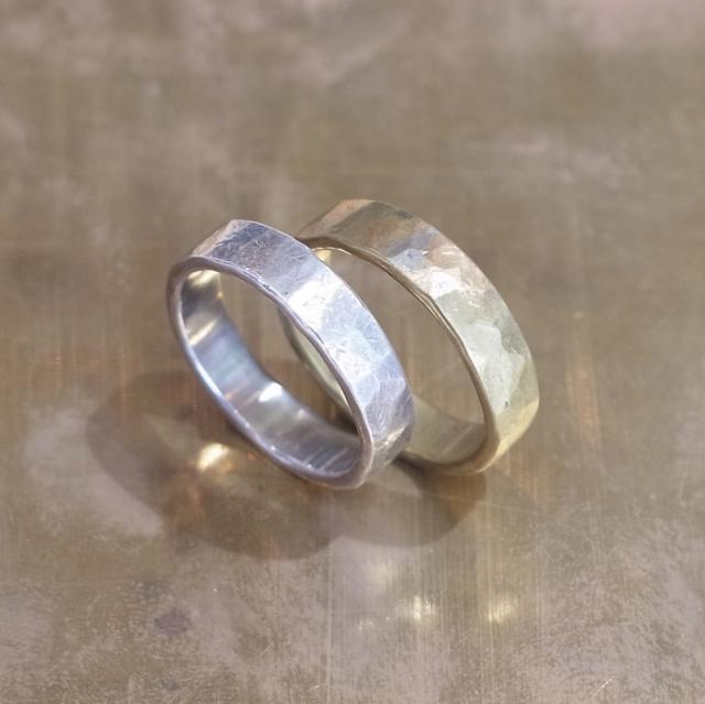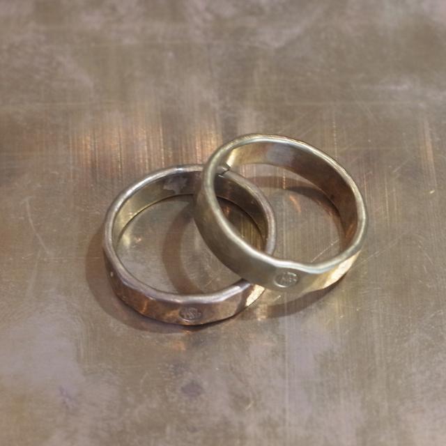 リング表面の幅が広くなっているので存在感もあり、叩いた面のハンドメイド感と「TSL」の刻印がポイントになっております。レザーの巾着袋入りです。