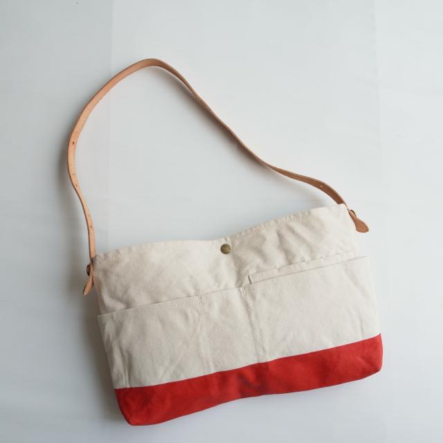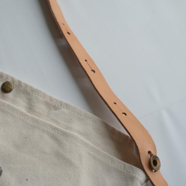やや柔らかい倉敷帆布を使用しており、ヌメ革のベルトは調節可能です。