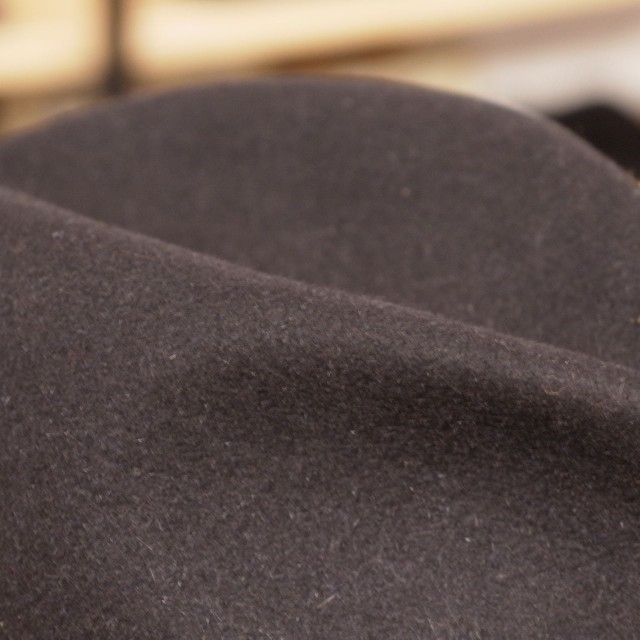 P&Rが得意とするロングブリムのハットです。ブリムの長さが9.5cmあります、中々この長さのブリムは見かけませんので、アクセントには抜群です。ラビットファーとウールを50:50で使用しています。