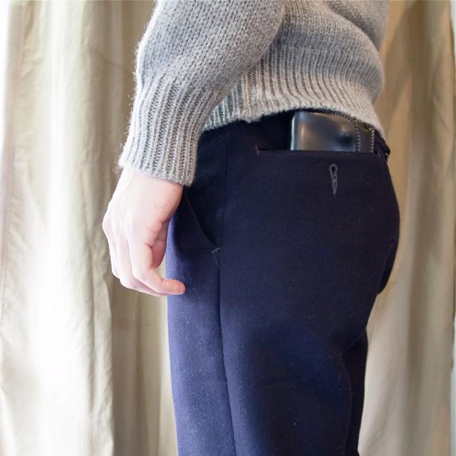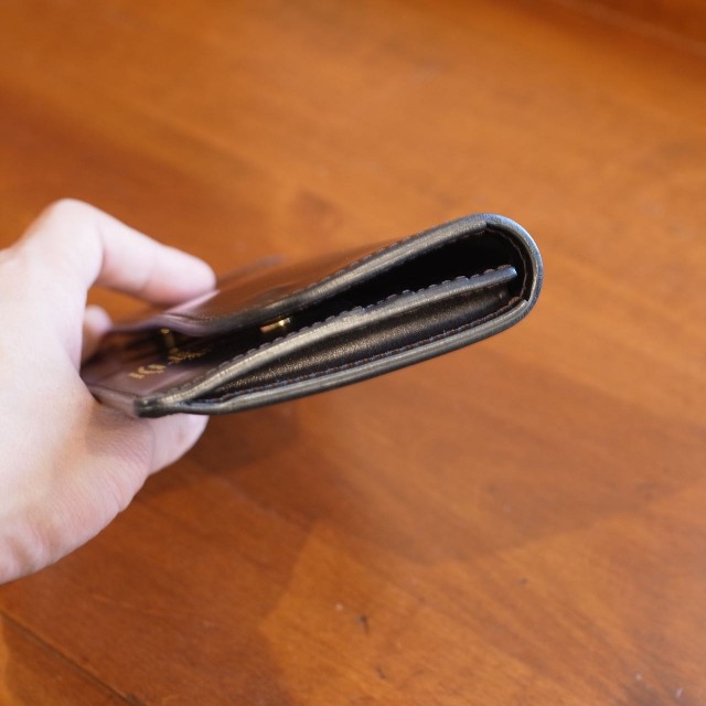 今回はカードポケット、お札入れをメインとした仕様で、あえてコインポケットは付けていないスタイリッシュなデザインとなっております。コインケースを別で持つ大人なロングウォレットです。