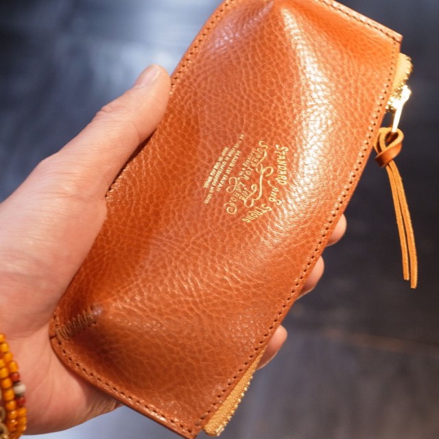オールレザーのペンケースです、当店では取り扱い初となるペンスケースは上質なイタリアンオイルレザーを使用しています。オイルレザーはツヤっとした質感で手触りが良く使い込む味が楽しみになります。