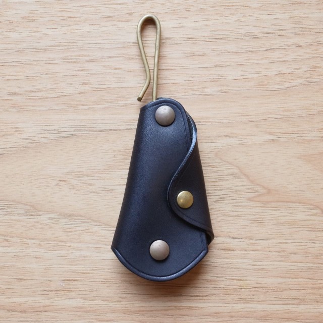 マイナスのネジ式止め具を回し開けて、その部分に鍵を通してレザーの内側に収納するタイプです(鍵は出したままでも使用可能)。パンツのベルトループやバッグの持ち手にも引っ掛けてお使いも頂けます。