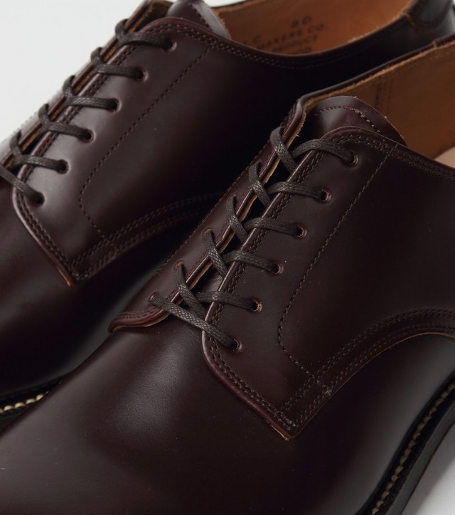 ON/OFFを問わずにお使いいただけるプレーントゥで、定番展開を少しずつミリ単位でアップデートしているので絶妙な形に仕上がっております。上質なうえ作りも抜群ですので、お手入れ次第では長くご愛用して頂けます。まだプレーントゥを持っていないという方も、新しい革靴を一足新調しようとしていた方にも、当店スタッフも愛用するお勧めの一足です。
