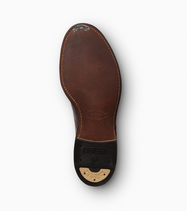 アウトソールにはオイルドベンズレザーを使用しているため、足に馴染みやすいのが特徴。ヒールにはBILTRITE社製のトップリフトを使用。グッドイヤーウェルト製法。日本製。交換も可能です。付属のトゥクリップも写真のように付ける事でソールの割れを防ぐ事が出来ます。