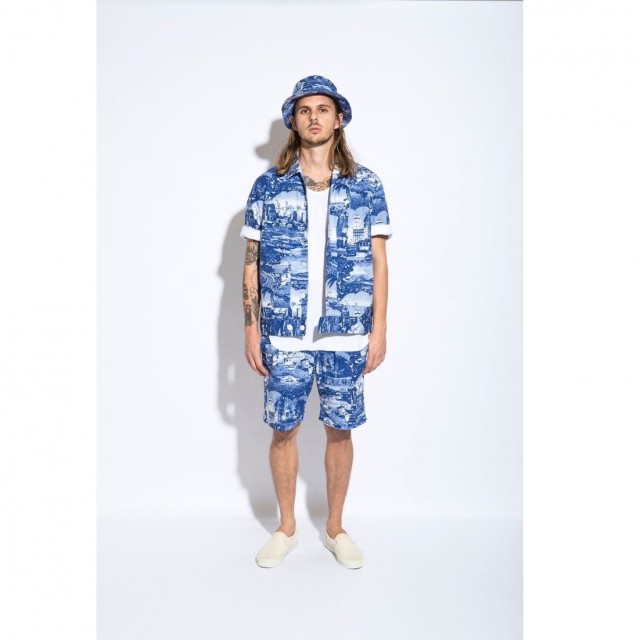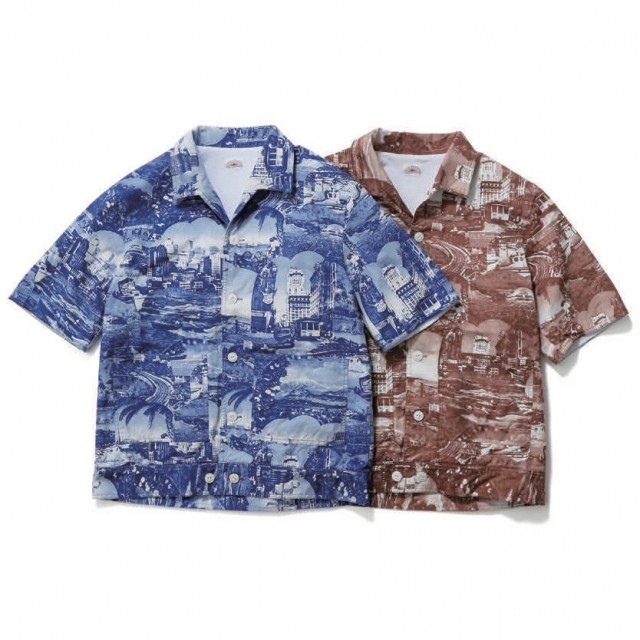 60年代頃にみられたカリフォルニアの写真と地名デザインの、PIG&ROOSTERオリジナルファブリック使用した半袖ジャケットです。