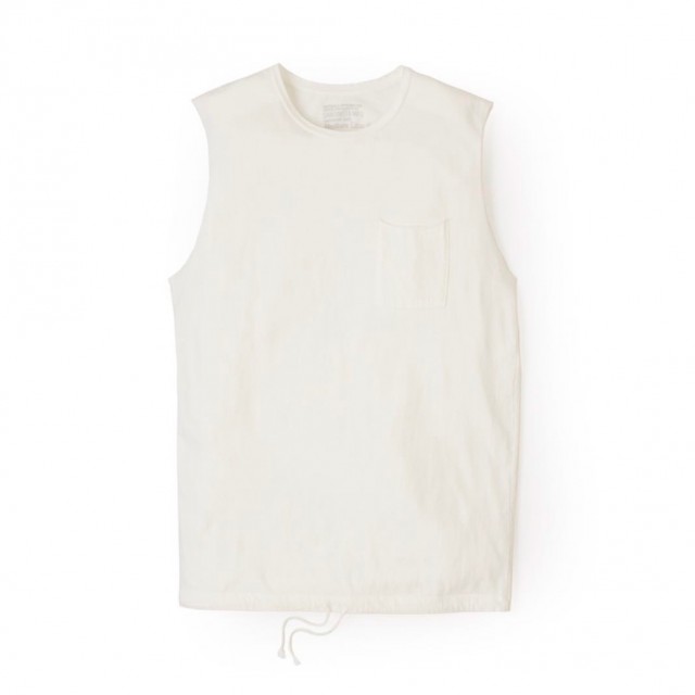 3層のオリジナルブレンドコットンを使用した、イージーフィット(大きめシルエット)のスリーブレスポケットTシャツです。