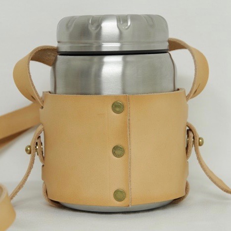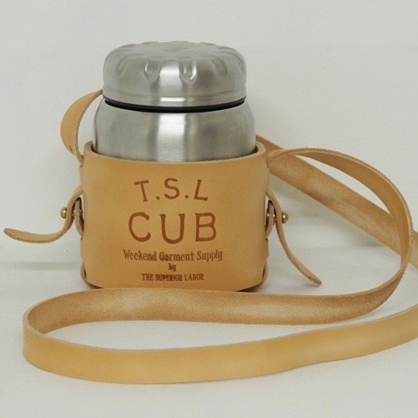 保温、保冷機能に優れるthermo mugのアイテムに、栃木レザーに別注した厚口のヌメ革を使用したホルダーをセットにしています。