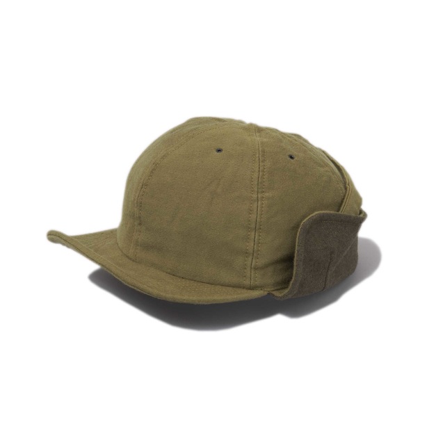 耳当て部分にはウール混起毛素材、ツバ芯はオリジナルの樹脂コーティング帆布素材を使用。