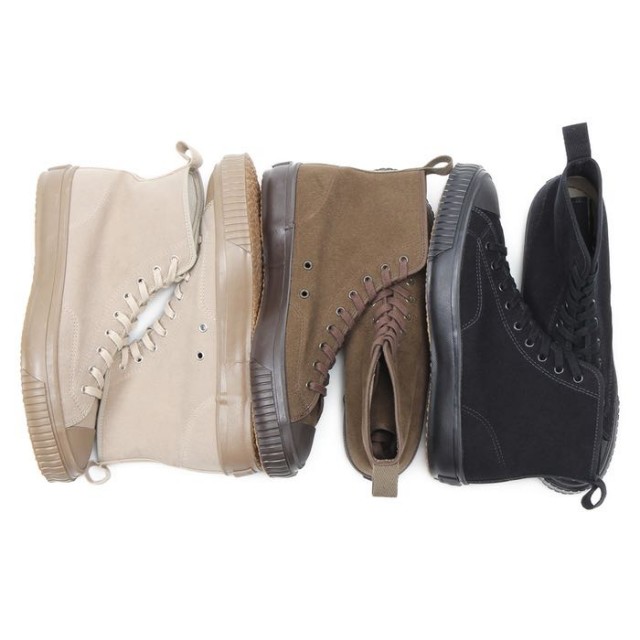 起毛した厚手の綿織物であるモールスキンを使用したハイカットモデル。