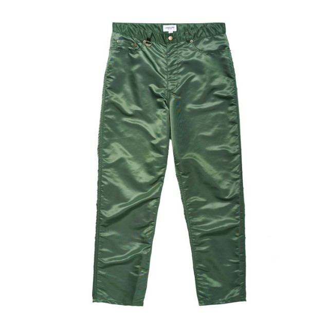ランドロードの代表作とも言えるナイロン素材のデニムタイプ、コインポケット部分のリベットやベルトループに付けたキーリングのディテールも◎