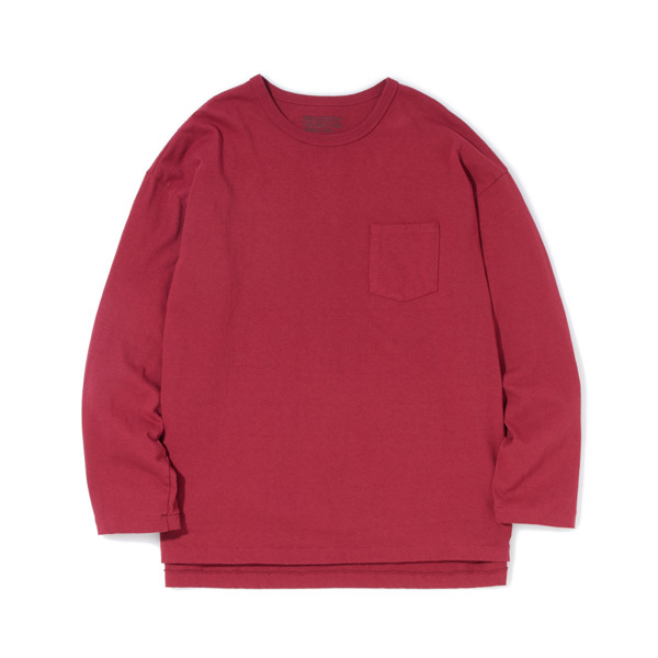定番18番手糸のアメリカコットンを使用した、イージーフィット(ゆったりシルエット)の裾スリット仕様ロングスリーブポケットTシャツです。