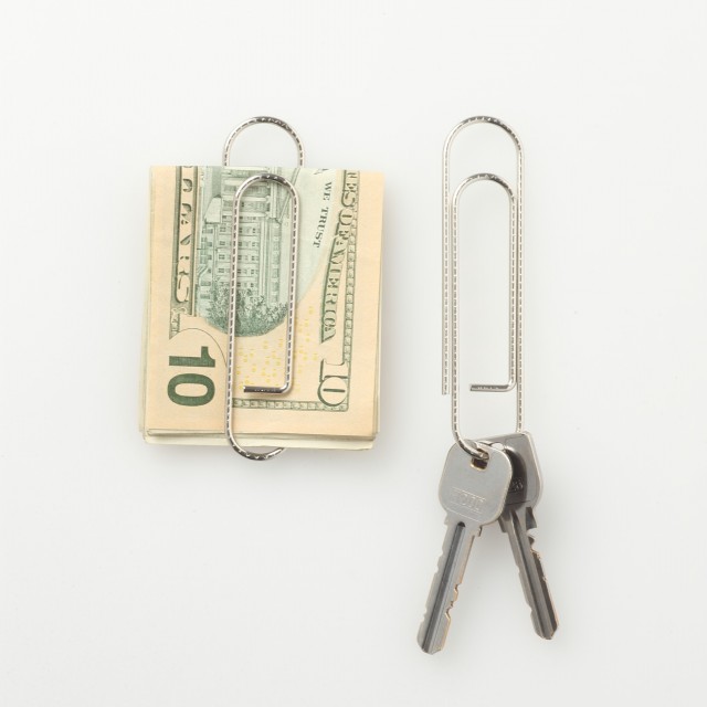 マネークリップまたはキーホルダーとして使用可能な特大ゼムクリップ付きです。