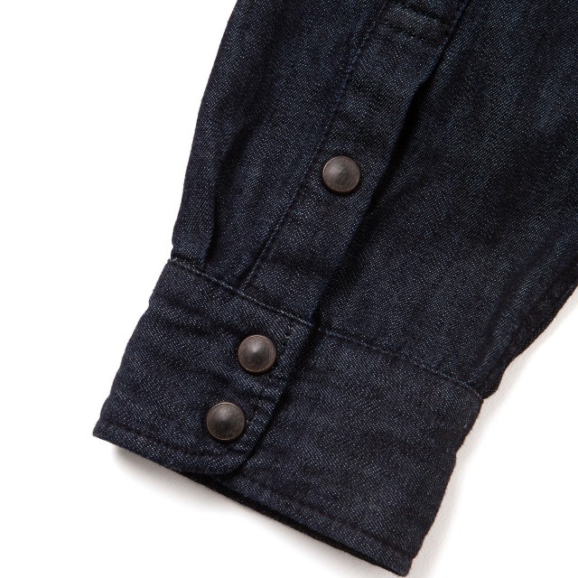すべてのステッチ糸を生地と同色インディゴにすることにより、数多く出回るデニムシャツとは異なった見た目となる大人なデニムシャツに仕上がりました。