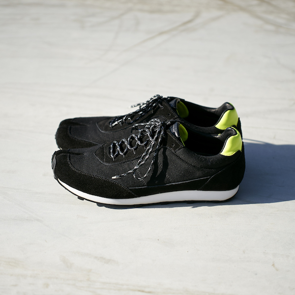 ヴィンテージのランニングシューズから型取ったパーツやワッフルパターンのソールにし、クラシックな雰囲気に仕上げている。