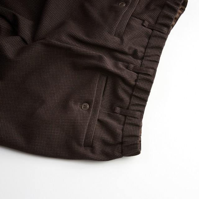 細かな千鳥格子柄が冬らしいイージーパンツ。