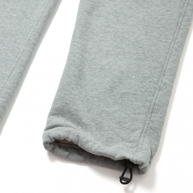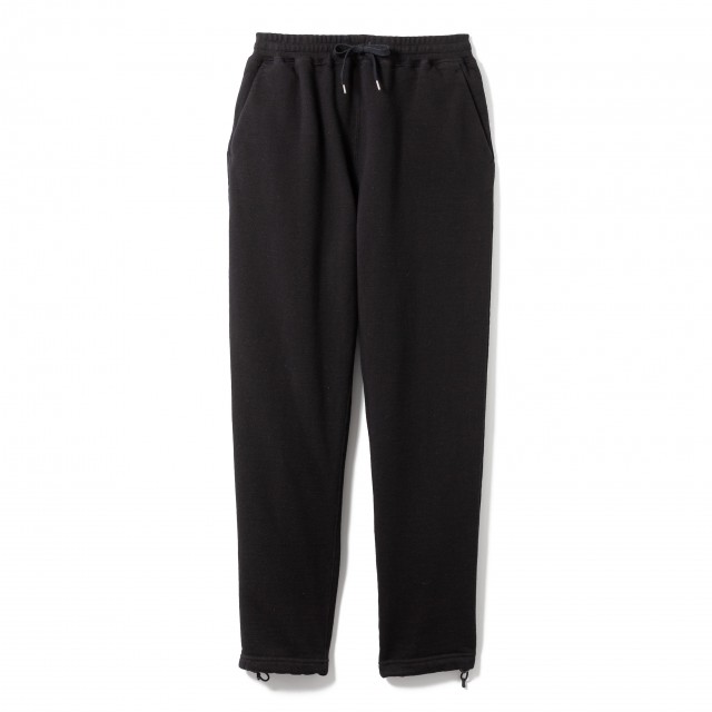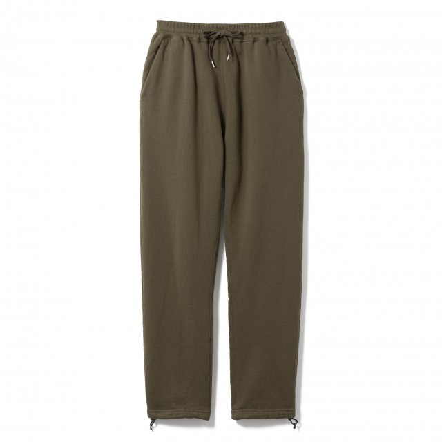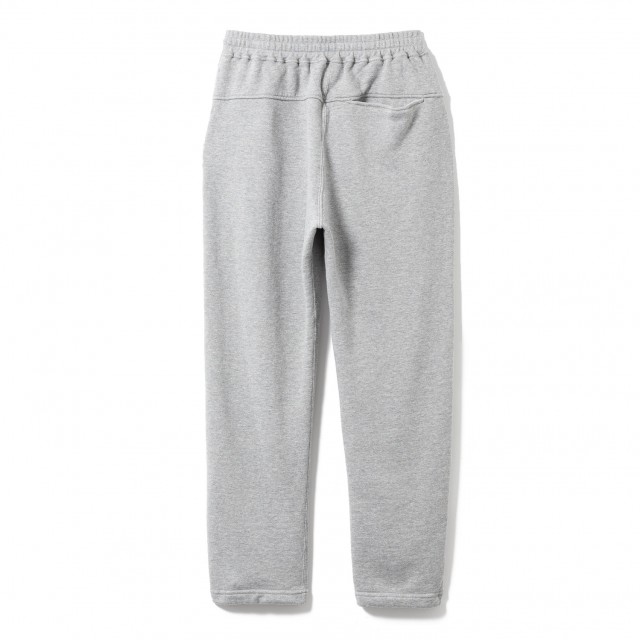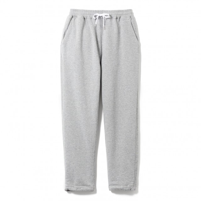 旧式の編み機で編み立てた度詰裏毛を使用した、 テーパードシルエットのスウェットパンツ。