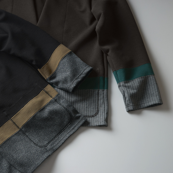 3種類の生地で切り替えることで1枚でもポイントになるデザインです。