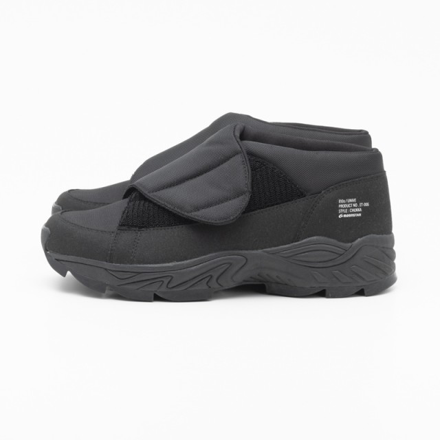 大きな面ファスナーを採用した足を包み込むフィッティング構造になっています。