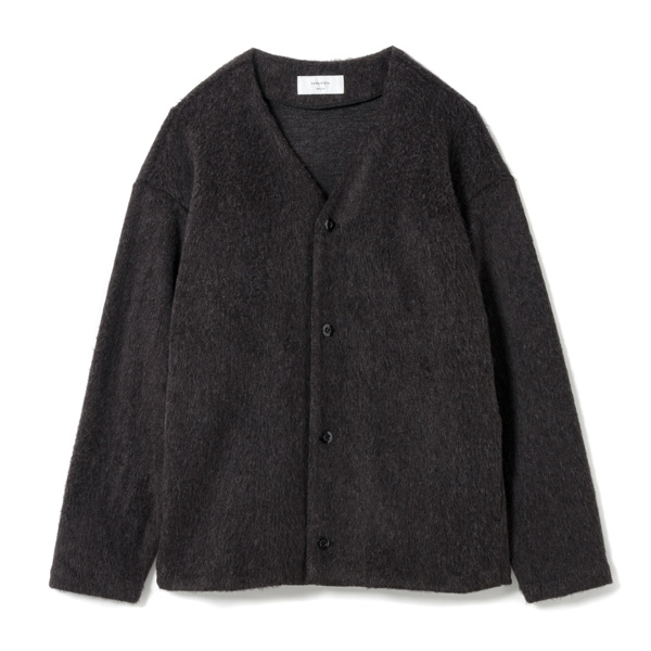 ボリュームのあるシャギー生地を使用した、イージーフィット(ゆったりシルエット)のカーディガンです。