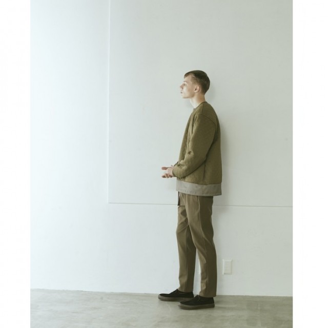 ミリタリーのライナーキルトをモチーフにジャガード機を使い編みで仕上げられたニットキルト素材です。