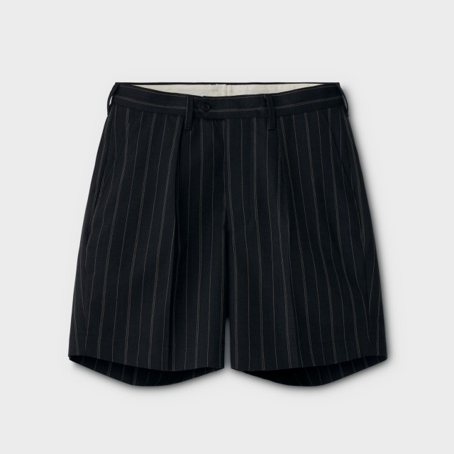 3 色掛け合わせた奥行きある色合いとザラっとした清涼感ある素材感が特徴で、ワンタック仕様のスラックスショートパンツです。