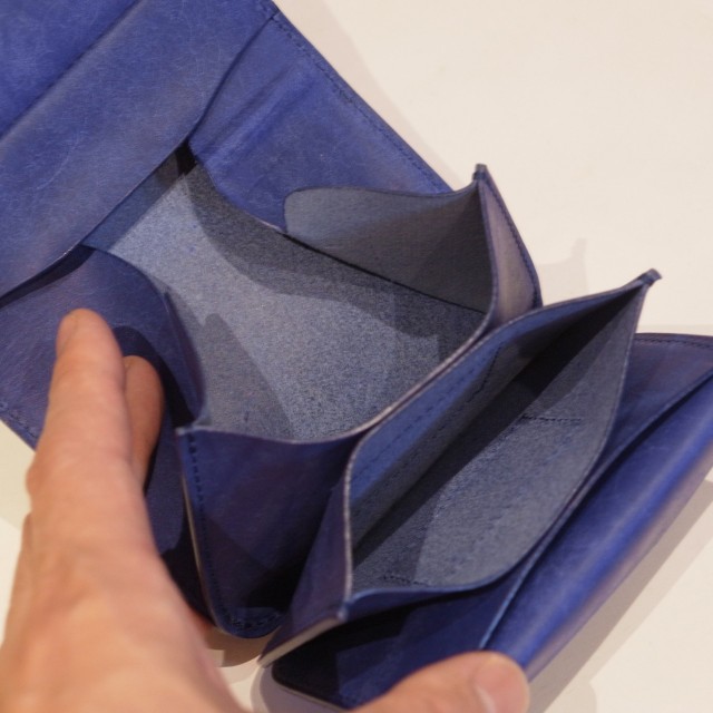 フリーポケット3、コインポケット1、お札とカードはフリーポケット内に、お札は三つ折り、四つ折りでポケットに収納します。