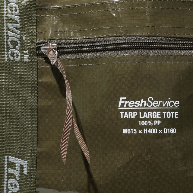 雨風に強く耐久性も高いオリーブカラーのシート素材で製作したFreshServiceのエコバッグシリーズです。