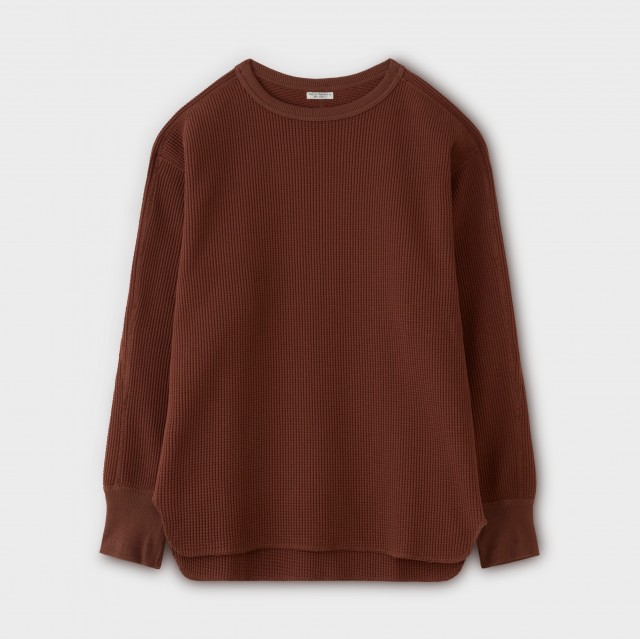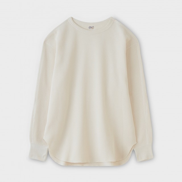 オリジナルヘビーワッフル素材。目が詰まりしっかりとしている生地感でありながら、柔らかな風合いも兼ね備えた理想的なワッフル素材です。