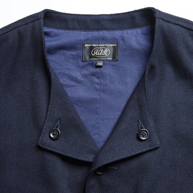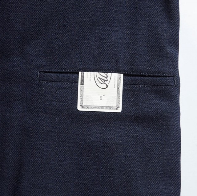 ザラついた素材感にウールの保温性、ヘリンボーン柄のミリタリー色の強い雰囲気が特徴です。