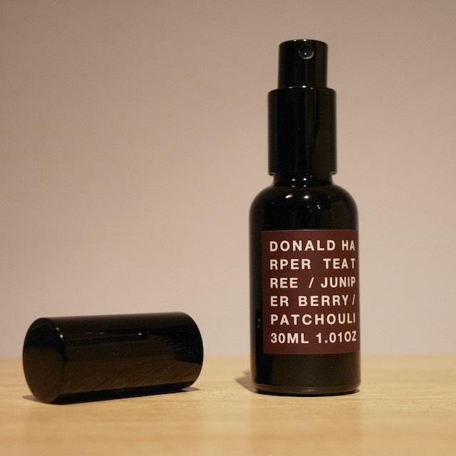 DONALD:ティーツリーの持つ鋭い香りと、軽くウッディーで爽やかな香りのジュニパー、スモーキーさがあり何処か色っぽさのあるパチュリを調合し、『Donald Judd』作品の明確で自立したシャープさを香りでイメージしています。