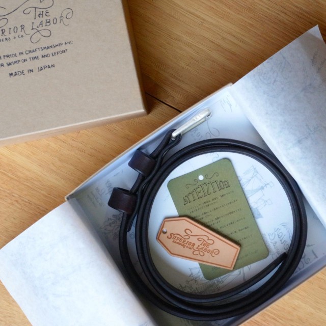 HUMAN and THINGS限定で、The superior laborに別注をしたシルバーバックル仕様のhand dye narrow belt。