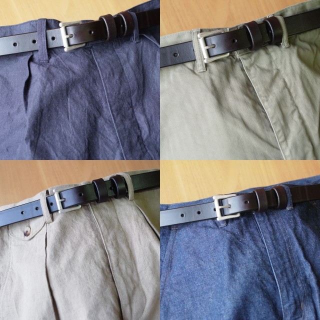 TSLのベルトは真鍮製素材のバックルのみでしたが、シーンやバリエーションの幅を広げたいという、ご要望にお応えした限定アイテムです。特にnarrow beltに関しては、スーツでのご着用比率も高い事もありビジネスシーンでの使用もお薦め。敢えて剣先のプレートや刻印も入れない、通常仕様とは異なる、プレーンな仕様にしました。