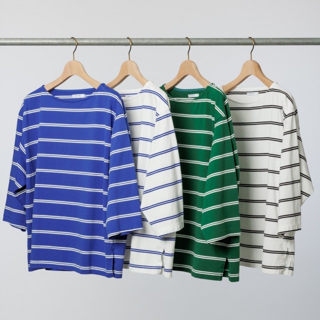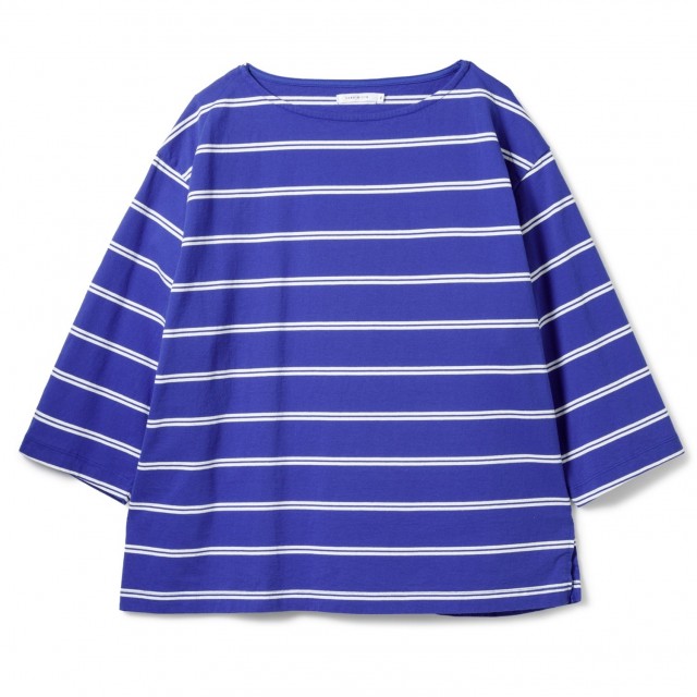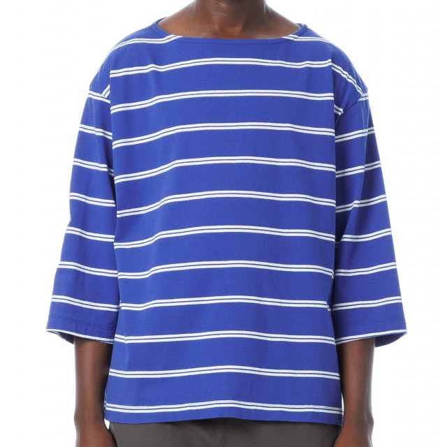 トルコ原産のオーガニックコットンボーダー生地を使用した、ボートネック七分袖丈Tシャツです。