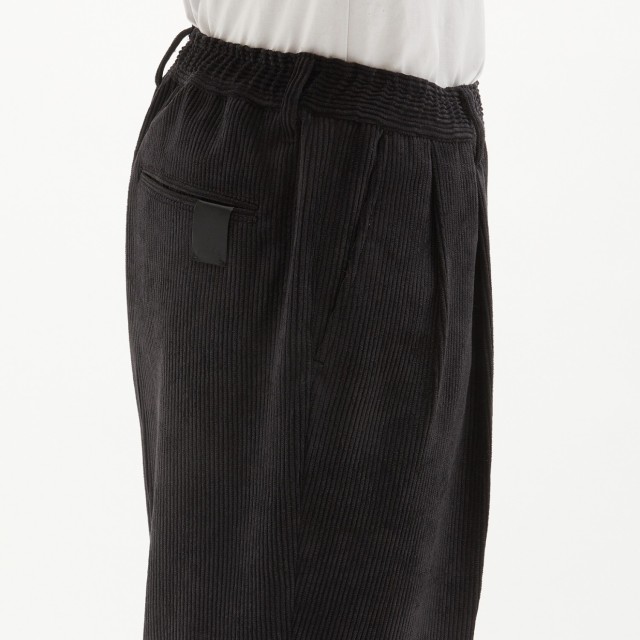 スラッシュポケットでソリッドな印象に仕上げ、ウエストに内蔵されたゴムとドローコードで細かなサイズ調整も可能。
