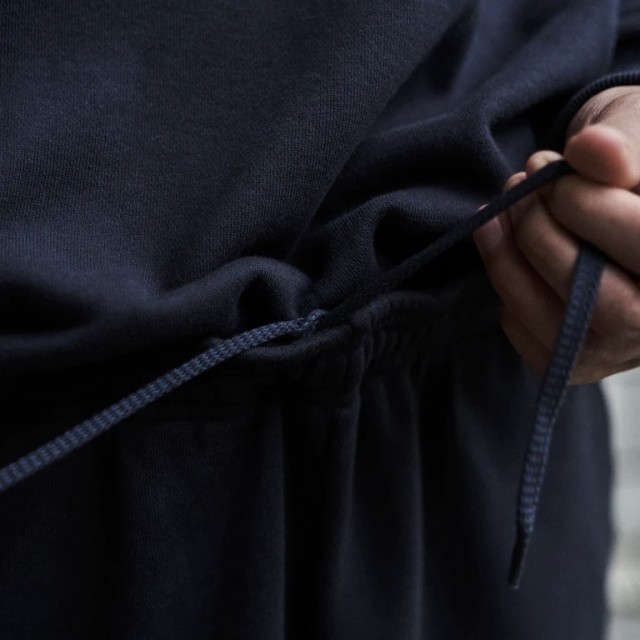 旧式の編機を使用することで、通常よりも空気を含む裏毛特有のバルキーな質感が特徴のスウェットパンツです。