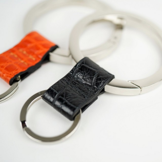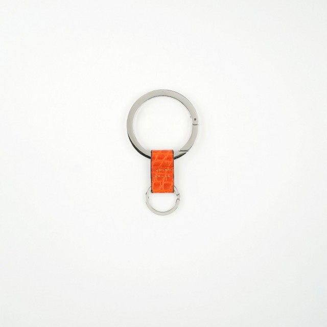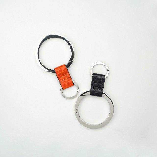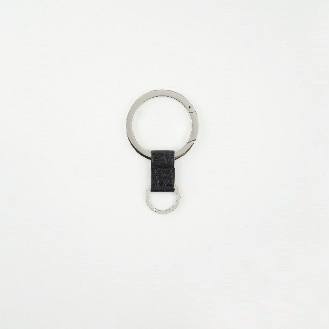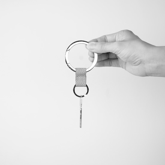 大振りな取り付けパーツが唯一無二の存在感を放つキーリングです。