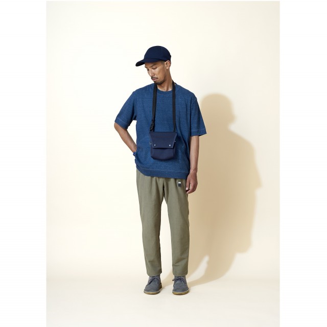 タテに編み目の立つ素材感が特徴で、素材には天然のインディゴ染料を使い糸を束(ロープ状)にして染め、糸の表面だけが染まって芯の部分は染まらず白いままで残す事で深みのある色に仕上がっています。