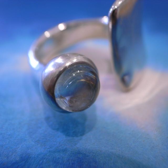 インパクトのある四角いシルバーと、淡いライトブルーの天然石「アクアマリン」の組み合わせが清らかな印象で、手元を美しく見せてくれます。